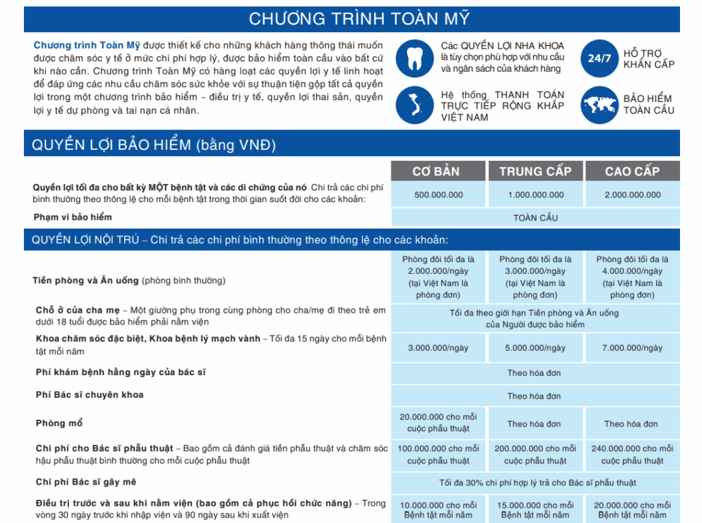 Chương trình Toàn Mỹ : Bảo vệ toàn cầu (kể cả ở Mỹ) – với 3 lựa chọn bảo vệ 500tr – 1 tỷ – 2 tỷ