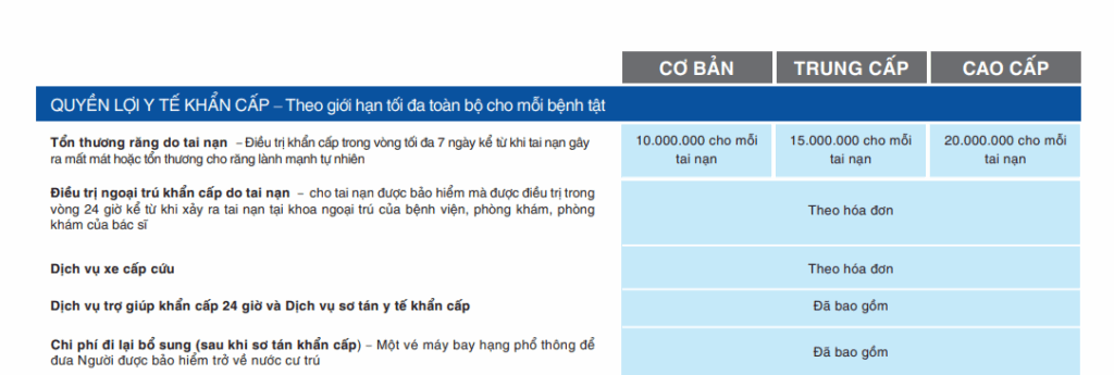Quyền lợi y tế khẩn cấp (chỉ riêng BH pacific có)