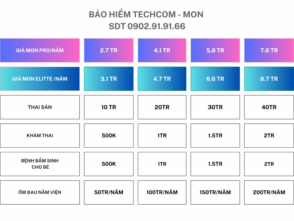Techcom sẽ không chi trả: các chi phí xét nghiệm trước sinh, chi phí chiếu plasma, lấy máu gót chân, chi phí sử dụng hạng phòng cao cấp hơn (hoặc chi phí bao phòng), spa massa, vitamin cho mẹ và bé…
