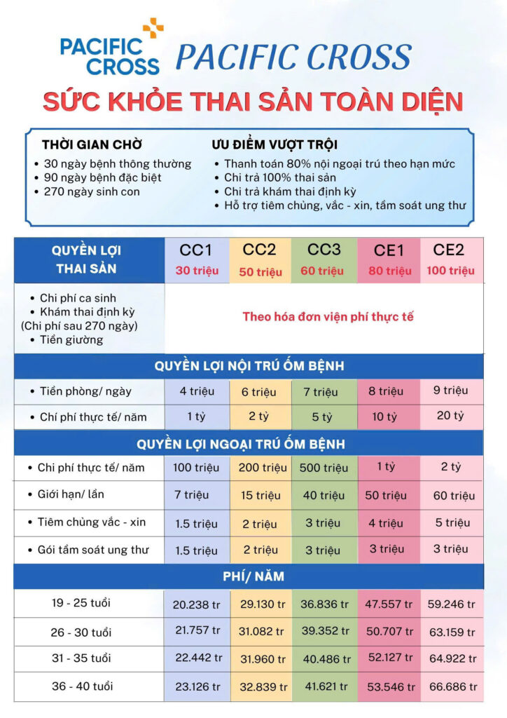 - Phạm vi chi trả toàn cầu (áp dụng cả sinh con ở nước ngoài)