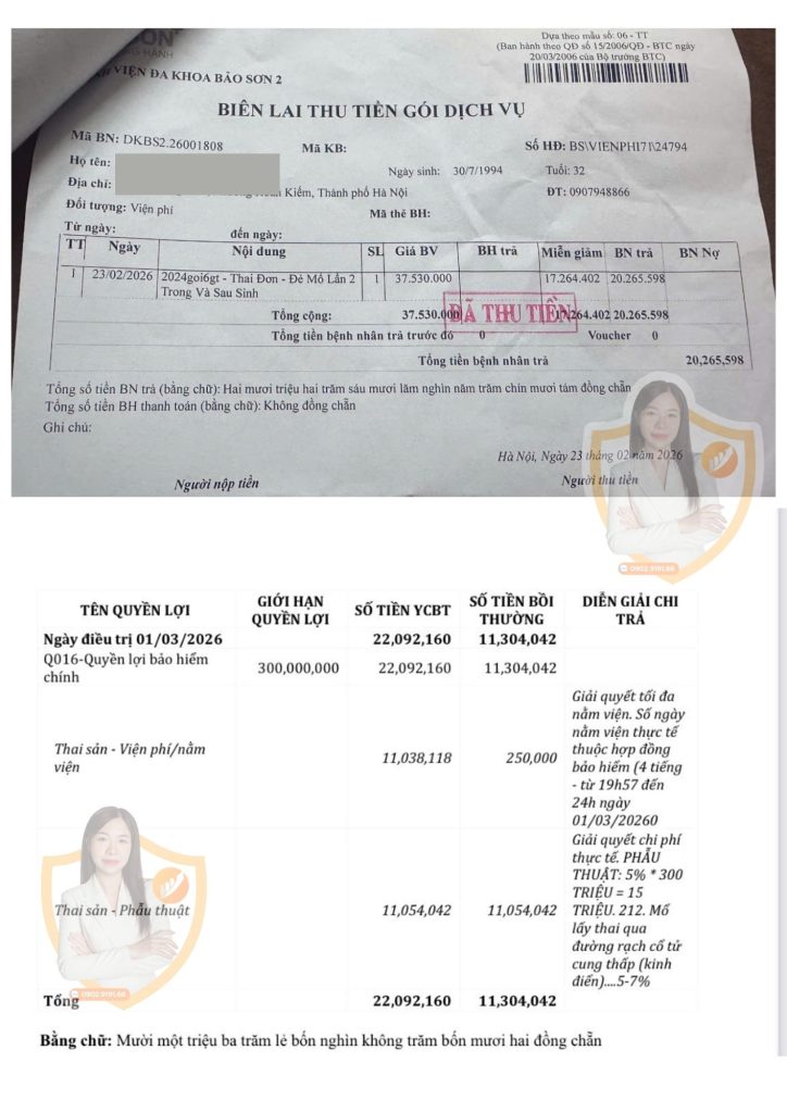 Case Thực Tế BV Bảo Sơn Hà Nội – ca thực tế (sanh mổ) by Dung Nguyen April 17, 2026 written by Dung Nguyen April 17, 2026 151 Hóa đơn thực tế 1 ca sinh mổ Khách hàng: Mua gói sinh trọn gói tại bênh viện Phòng đơn ( 1 mình 1 phòng) → total : 22 triệu Bảo hiểm : Thanh toán 11tr với gói thai sản giá rẻ – 20tr với gói uy tín hơn P/s: Chi phí y tế có thể thay đổi tùy theo năm, bài viết chỉ mang tính chất tham khảo, không đại diện cho tất cả các trường hợp sinh con ở bệnh viện này 0 comments Dung Nguyen previous post BV Vinmec Hà Nội – ca thực tế (sanh mổ) next post BV Sản nhi Bắc Ninh 1 – ca thực tế (sanh mổ) You may also like BV SIH – ca thực tế (sanh mổ... April 17, 2026 BV SIH – ca thực tế (sanh mổ) April 17, 2026 BV Sản nhi Bắc Ninh 1 – ca... April 17, 2026 BV Vinmec Hà Nội – ca thực tế... April 17, 2026 Sinh con bệnh viện Sản nhi Phú Thọ March 11, 2026 Sinh thường Hạnh Phúc March 11, 2026 Sinh con BV Green (Sinh mổ) March 10, 2026 Sinh con BV Lạc Việt (Sinh mổ) March 10, 2026 Bệnh viện Phương Chi (sinh mổ) March 10, 2026 Bệnh viện Hồng Ngọc Yên Ninh (sinh mổ) March 10, 2026