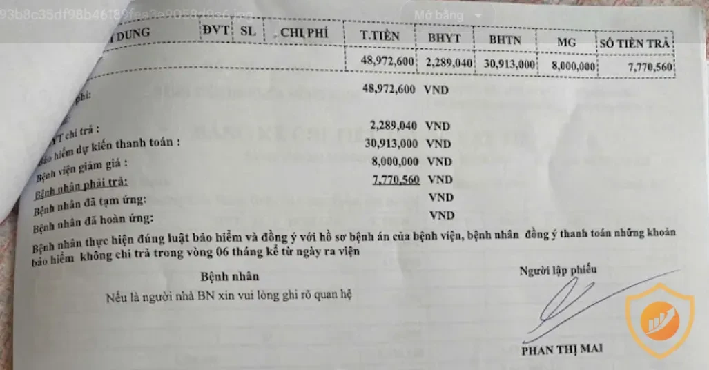 Hóa đơn thực tế 1 ca sinh mổ ở Hồng Ngọc Phúc Trường Minh