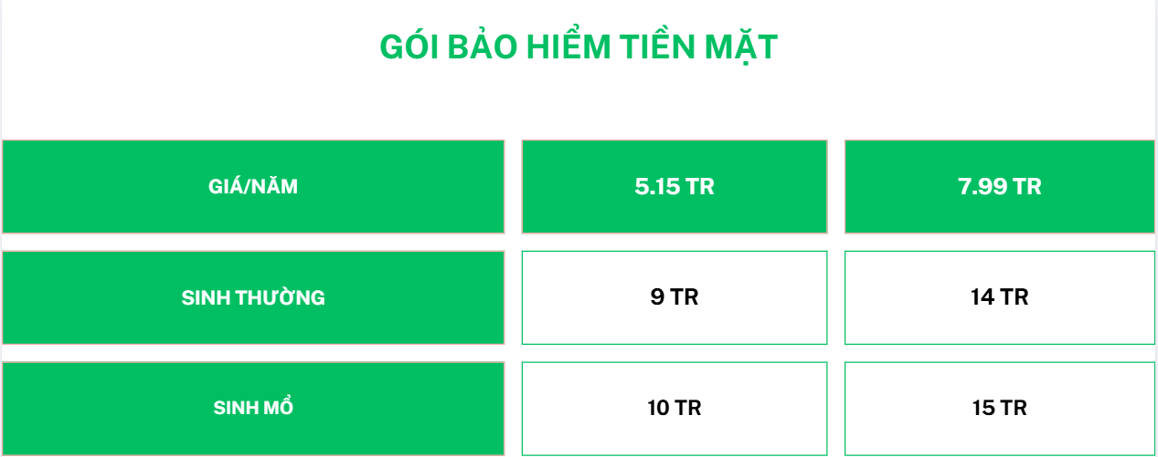 BH tiền mặt sẽ thanh toán cho bạn số tiền cố định (như ảnh) – không phụ thuộc vào hóa đơn viện phí, không phụ thuộc vào những gói BH mà bạn đã có sẵn. Chỉ cần sinh con sẽ nhận được tiền!