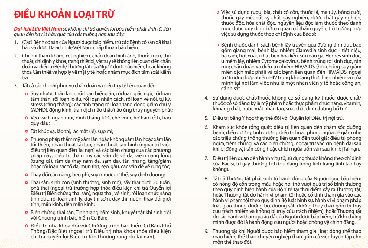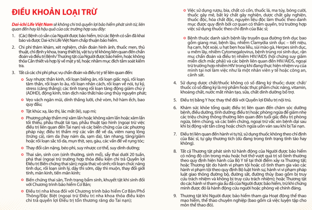 Uncategorized Những bệnh/trường hợp Dai-ichi không thanh toán by Dung Nguyen December 17, 2025 written by Dung Nguyen December 17, 2025 48 0 comments Dung Nguyen previous post Quà tặng giành riêng cho khách hàng Thai sản next post Thông tin hướng dẫn sử dụng quyền lợi bảo hiểm sức khỏe You may also like Thông tin hướng dẫn sử dụng quyền lợi... December 17, 2025 Hướng dẫn làm bồi thường Techcom December 2, 2025 Hợp đồng mẫu gói HU2 November 24, 2025 Thông báo: Ngừng hợp tác với Ideal Life... November 3, 2025 Hợp đồng mẫu gói bảo hiểm Pacific Cross October 2, 2025 Mẹo để sử dụng bảo hiểm luôn happy October 2, 2025 So sánh Dai-ichi và Sunlife September 23, 2025 Nhân Thọ Dai-ichi hay Generali September 9, 2025 Gói BH cho con: mua như nào? September 9, 2025