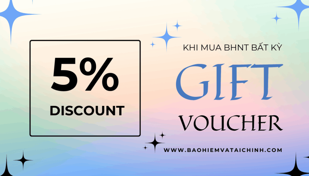 Dung Nguyễn thân tặng bạn 01 Voucher tiền mặt trị giá 5% phí bảo hiểm năm đầu tiên cho một hợp đồng BHNT bất kỳ.