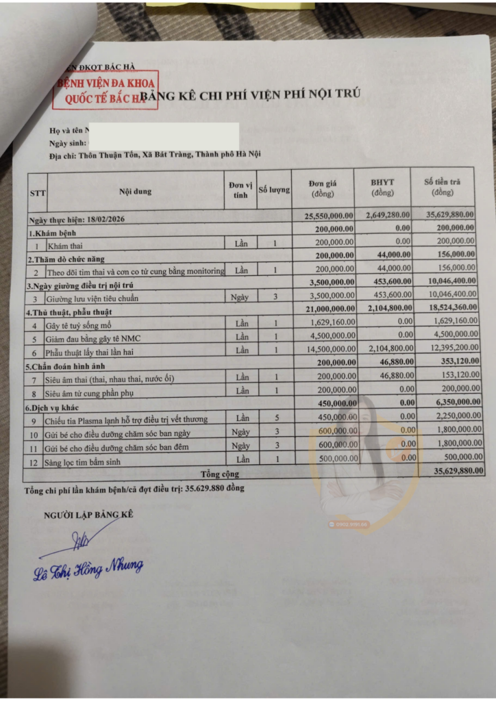 Dưới đây là một hóa đơn sinh thực tế để bạn có góc nhìn rõ ràng trước khi quyết định mua bảo hiểm thai sản.