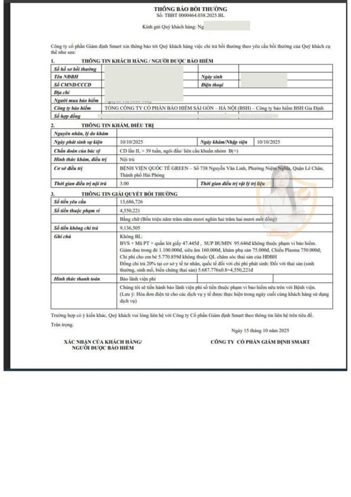 - BH thai sản: (gói BH giá rẻ: dạng như techcom/mic/vbi…) thanh toán ~ 4.5 triệu