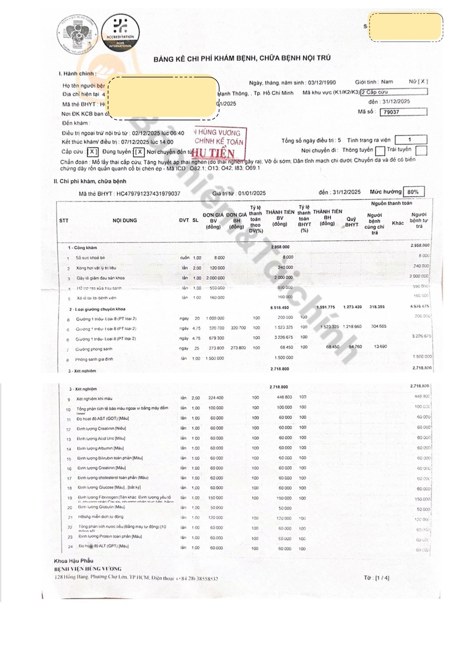 - BHYT trả: 3.5 triệu (nếu ko có BHYT thì BH thai sản sẽ trả luôn phần này)